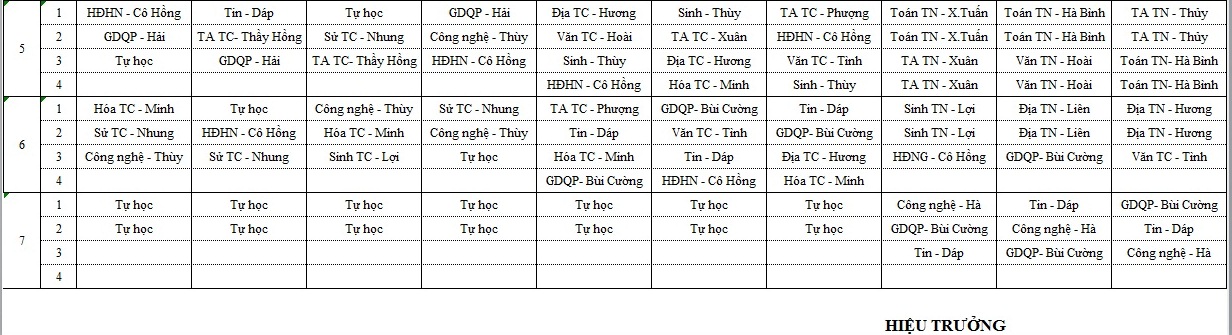 Thời khóa biểu tuần 29 năm học 2020-2021