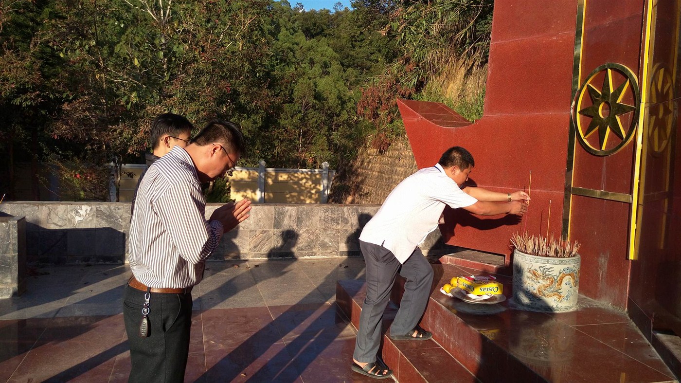 Cùng với khí thế của cả dân tộc ra trận, những người con Điện Biên Đông đã phát huy truyền thống anh dũng của quê hương văn hiến giàu truyền thống cách mạng luôn sẵn sàng xung phong lên đường tham gia chiến đấu bảo vệ non sông thống nhất Đất nước. Trong suốt chặng đường dài của cuộc kháng chiến đánh Pháp, chống Mỹ, có biết bao người con của đất Điện Biên Đông, nhất là tuổi trẻ Điện Biên Đông đã không tiếc máu xương, tuổi xuân của mình để góp phần vào đài hoa chiến thắng của dân tộc. Các đồng chí có những người đã về yên nghỉ trên mảnh đất quê hương và còn có biết bao anh hùng liệt sỹ đang yên nghỉ trên khắp mọi miền tổ quốc. Những cống hiến lớn lao và sự hy sinh cao cả của các anh hùng liệt sỹ thể hiện sáng ngời chủ nghĩa anh hùng cách mạng của dân tộc Việt Nam trong thời đại Hồ Chí Minh vì độc lập tự do của dân tộc, vì chủ nghĩa xã hội. Với đạo lý “Uống nước nhớ nguồn”, “Ăn quả nhớ người trồng cây” trong chương trình tổ chức các hoạt động đền ơn đáp nghĩa, tri ân các anh hùng liệt sỹ của trường Phổ thông DTNT THPT huyện Điện Biên Đông năm học 2016-2017. Hôm nay, nhân dịp kỷ niệm 34 năm ngày nhà giáo Việt Nam (20/11/1982 – 20/11/2016) cán bộ, giáo viên, nhân viên và học sinh nhà trường dẫn đầu đoàn là đồng chí Vũ Trung Hoàn - Bí thư Chi bộ, Hiệu trưởng đã hội tụ về đây để kính dâng những ngọn nến, hương, hoa đến với âm linh các anh hùng liệt sỹ, thể hiện sự tri ân sâu sắc các thế hệ cha anh đã không tiếc máu xương, tuổi xuân dâng trọn đời mình cho độc lập tự do của dân tộc, cho hạnh phúc của nhân dân và tuổi trẻ hôm nay. Những nén nhang, những bông hoa của cán bộ, giáo viên, nhân viên và học sinh nhà trường đặt trên đài tưởng niệm của các anh, các chị thể hiện lòng biết ơn vô hạn của thế hệ hôm nay với những người con đã hi sinh cho Tổ quốc, chính các anh, các chị đã viết nên những trang sử vàng chói lọi, soi đường cho thế hệ chúng tôi tiếp bước theo sau. Máu đào của các anh, các chị đổ xuống đã nhuộm đỏ thêm màu cờ Tổ quốc, làm xanh thêm những mảnh đất quê hương, vinh quang ấy thuộc về các anh hùng liệt sỹ. Xin nguyện chung sức chung lòng tiếp tục truyền thống vinh quang của các anh hùng liệt sỹ, trung thành với lý tưởng của Đảng cộng sản Việt Nam, mãi mãi đi theo con đường của Đảng, Bác Hồ và nhân dân đã lựa chọn, nguyện đoàn kết một lòng vượt qua khó khăn gian khổ, ra sức thi đua "Rèn đức, luyện tài", xung kích tình nguyện xây dựng và bảo vệ tổ quốc Việt Nam xã hội chủ nghĩa. Sẵn sàng đảm nhiệm, làm bất cứ một việc gì khi Tổ quốc và nhân dân giao cho. Trong giờ phút thiêng liêng và xúc động này, tập thể cán bộ, giáo viên nhân viên và học sinh trường Phổ thông DTNT THPT huyện Điện Biên Đông nguyện phát huy truyền thống anh hùng bất khuất của thế hệ cha anh đi trước, nguyện đem hết sức mình, trí tuệ để thực hiện tốt nhiệm vụ giáo dục, góp phần công sức của mình thực hiện thắng lợi các mục tiêu phát triển kinh tế - xã hội, đảm bảo an ninh quốc phòng, xây dựng quê hương Điện Biên Đông ngày càng giàu đẹp văn minh. Một số hình ảnh của lễ viếng Đài tưởng niệm