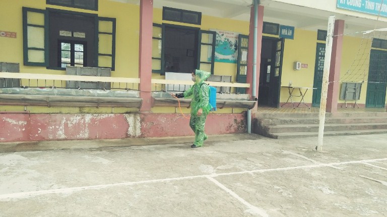 Ngày 30-31/8/2021, cán bộ, giáo viên, nhân viên nhà trường đã tham gia tổng vệ sinh toàn bộ khuôn viên trường lớp học; vệ sinh bàn ghế, bếp ăn, đồ dùng, thiết bị thí nghiệm… Bên cạnh đó, nhà trường đã phối hợp với Trung tâm y tế huyện và Trạm y tế thị trấn phun tiêu độc, khử trùng khuôn viên trường, phòng làm việc, phòng chức năng, nhà nội trú và các lớp học bằng dung dịch Cloramin-B. Hơn nữa, nhà trường giao cho các giáo viên chủ nhiệm phối hợp với phụ huynh nắm rõ tình hình sức khỏe của từng học sinh. Khi học sinh tựu trường sẽ thực hiện nghiêm túc quy định 5K của Bộ Y tế “Khẩu trang - Khử khuẩn - Khoảng cách - Không tập trung - Khai báo y tế”.
