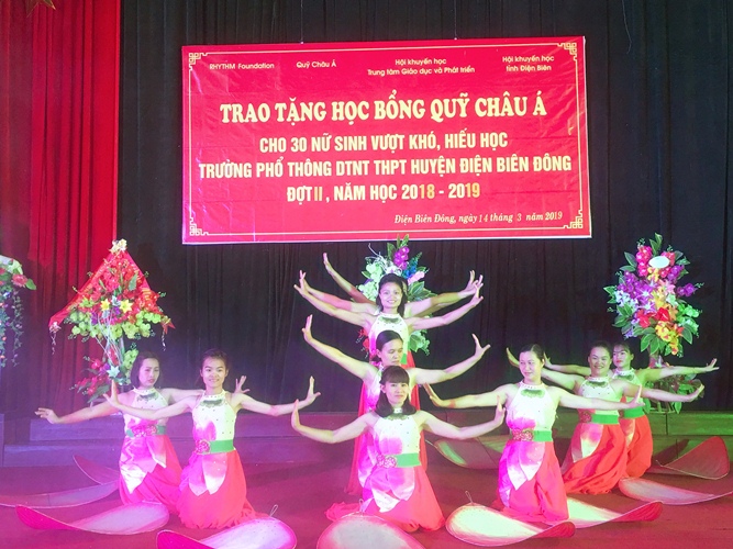Sáng ngày 14/3/2019, Trường Phổ thông DTNT THPT huyện Điện Biên Đông vinh dự được đón đoàn làm việc của Quỹ Châu Á đến trao tặng 30 suất học bổng cho các em nữ sinh của nhà trường. Mục tiêu của dự án nhằm hỗ trợ các em học sinh nữ có hoàn cảnh đặc biệt khó khăn nhưng vẫn cố gắng vươn lên và đạt thành tích cao trong học tập để có thể tiếp tục học hết chương trình THPT, mỗi suất học bổng trị giá 2.200.000 đồng.