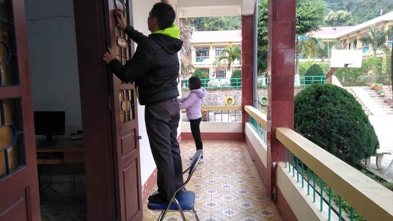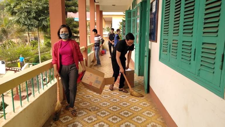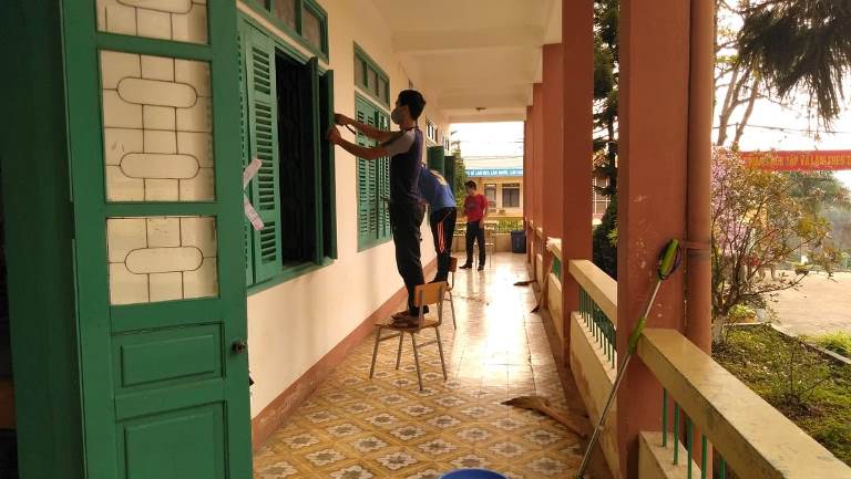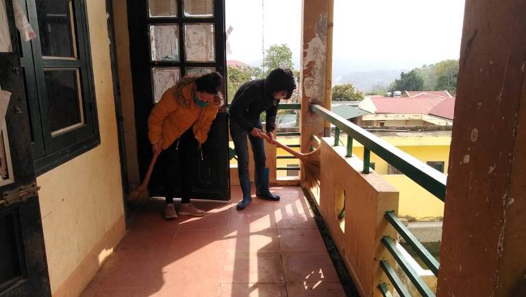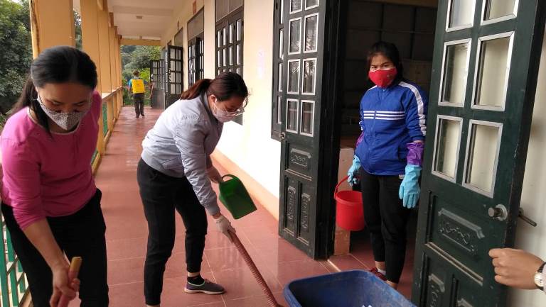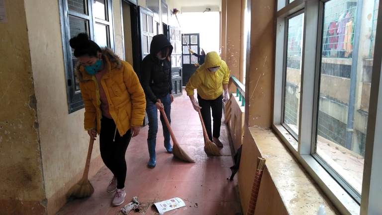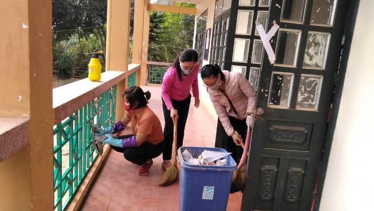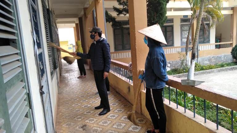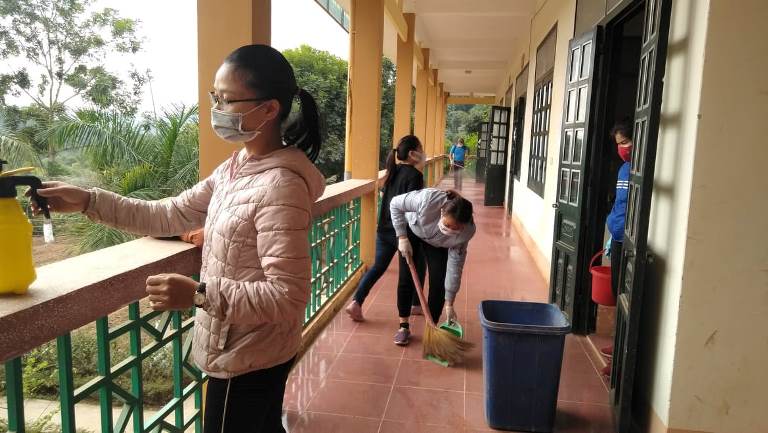 Trường Phổ thông DTNT THPT huyên Điện Biên Đông tổ chức tập huấn cho giáo viên, nhân viên nhà trường về vệ sinh, tiêu độc, khử trùng và tham gia tổng vệ sinh môi trường để phòng, chống bệnh viêm phổi cấp do chủng mới virus nCoV gây ra.