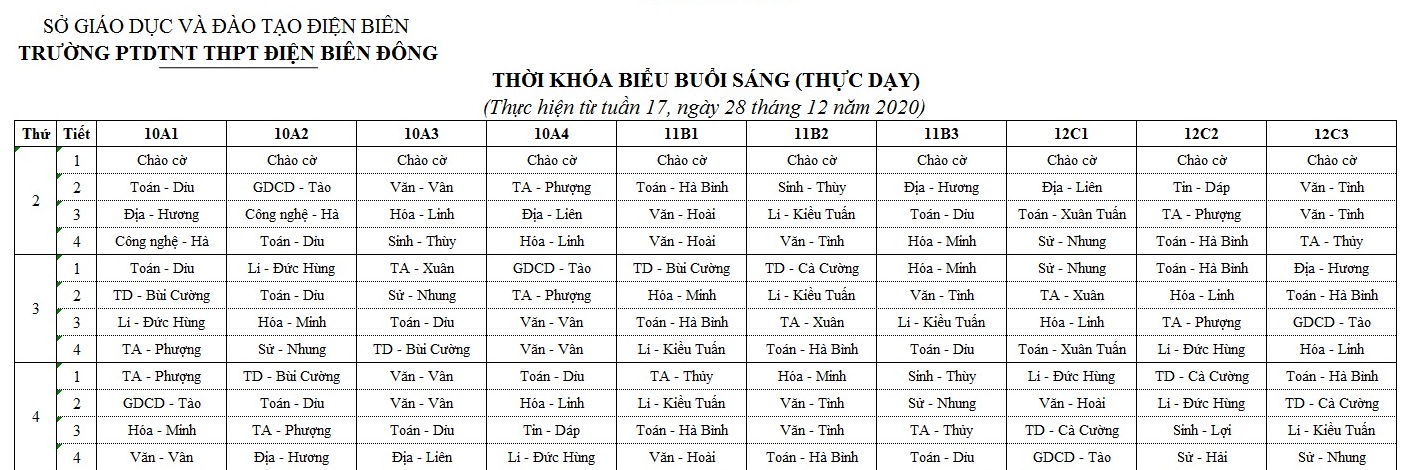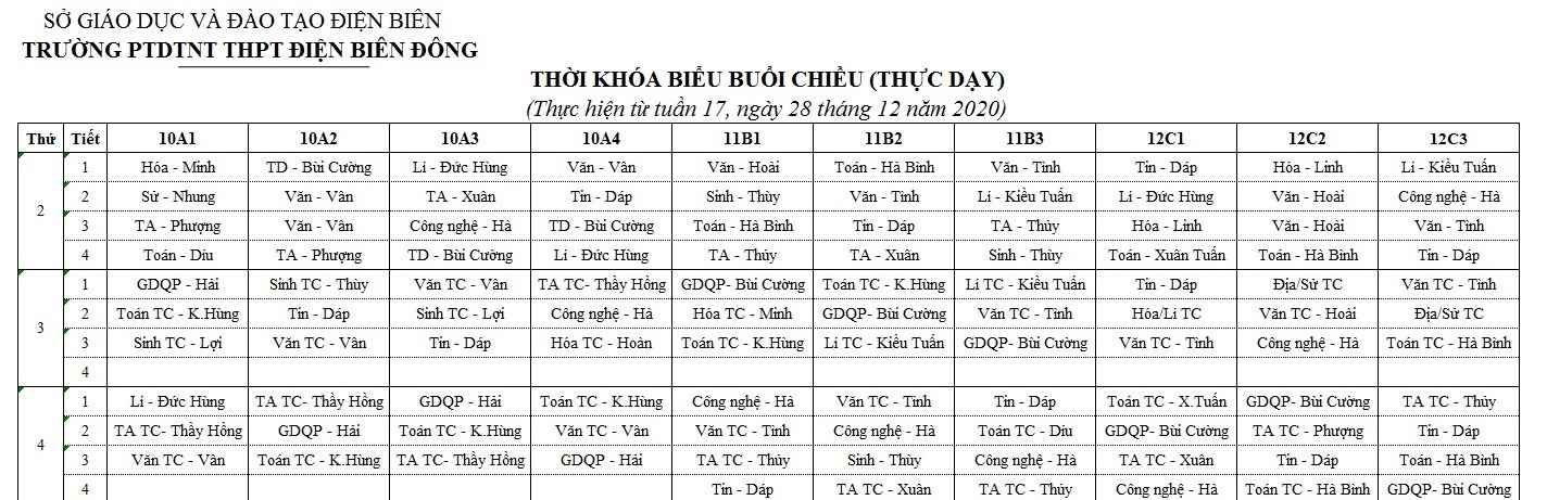 Thời khóa biểu tuần 17 năm học 2020-2021