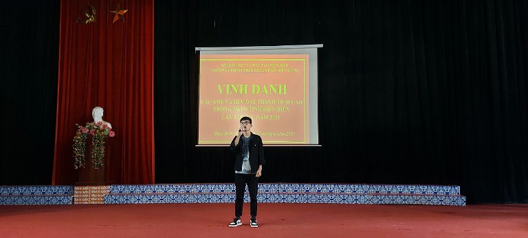 Ngày 12 tháng 4 năm 2021 trường Phổ thông DTNT THPT huyện Điện Biên Đông long trọng tổ chức chương trình Vinh danh các vận động viên và huấn luyện viên đạt thành tích cao trong Hội khỏe phù đổng tỉnh Điện Biên lần thứ XX, năm 2021. Đến dự buổi Vinh danh về phía ban đại diện cha mẹ học sinh có bác Sùng A Sinh Phó ban đại diện cha mẹ học sinh nhà trường. Về phía nhà trường có sự hiện diện của thầy giáo Vũ Trung Hoàn Bí thư chi bộ, hiệu trưởng nhà trường và đông đủ của các thầy giáo, cô giáo cùng toàn thể các em học sinh. Tham gia Hội khỏe phù đổng tỉnh Điện Biên năm nay, trường PTDTNT THPT huyện Điện Biên Đông có 13 vận động viên tham gia thi đấu ở 04 bộ môn gồm: Đá cầu, Đẩy gậy, Cầu lông, Điền kinh. Qua một thời gian miệt mài tập luyện, sự nỗ lực cố gắng của cả thầy và trò, đoàn vận động viên của nhà trường đã tham gia thi đấu nhiệt tình, cố gắng và đã đạt được các thành tích đáng khích lệ. Kết quả: Đoàn vận động viên nhà trường đạt tất cả 06 giải trong đó: 02 giải Nhì Điền kinh(1500 m nam, 400 m nữ), 04 giải Ba(01 giải Ba Điền kinh 5000 m nam, 01 giải Ba đẩy gậy, 01 giải Ba Cầu lông đơn nam, 01 giải Ba cầu lông đôi nam nữ). Sau đây là một số hình ảnh của buổi vinh danh: